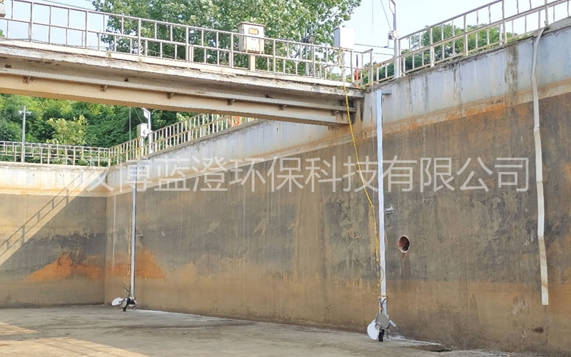 江苏某工业污水处理厂厌缺氧池内原先采用推流器,由于推力过大,导致支架断裂,在厌缺氧池内大量沉积淤泥,导致池容严重不足,影响生化系统正常运行。